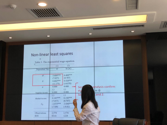 栾富舒博士首先详细介绍了空间计量模型和GIS模型理论及应用。之后栾富舒博士介绍了中国高铁建设的历程,以及开通高铁前后一些城市经济变化以及人员流动情况,并且通过实证研究发现中国人口伴随的高铁的开通呈现加速流动的态势,并且人员流动在原有从北向南流动的基础上,开始从西向东流动。同时中国高铁的开通进一步加深了中国区域经济发展的不平衡。座结束后,栾富舒博士还对教师与同学们提出的问题进行了详细的解答。