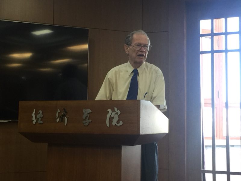2018年8月16日上午,美国前副国务卿、哈佛大学经济系教授Richard Cooper应邀来365官网作名家讲座,报告题目为《当前世界经济的前景与挑战》。报告由beat365登录平台副院长史本叶教授主持,beat365登录平台院长李晓教授、副院长王倩教授等出席了报告会,同时来自beat365登录平台的一百余名研究生参加了此次学术报告会。
